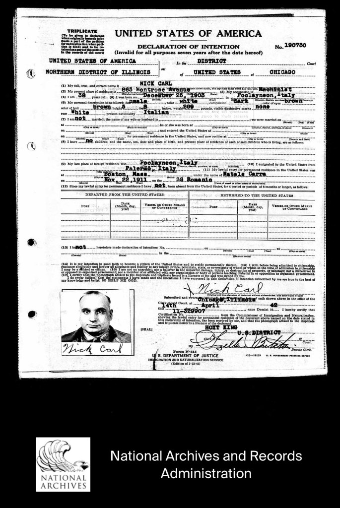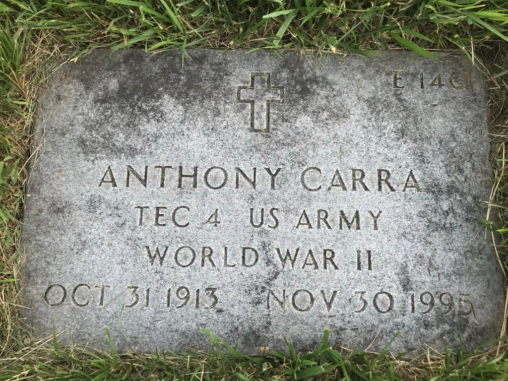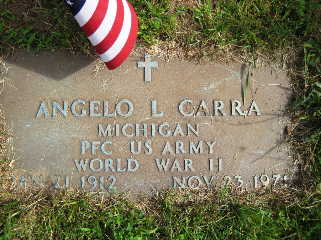 Esther Lena Burgo Daughter of Violet & Sam Burgo b. 1920 in Kalamazoo, MI d. 2003 in Bedford, MICarmelo “Buzz” Carra Son of Violet & Samuel Carra b. 1919 in Kalamazoo, MI d. 1989 in Kalamazoo , MICarmelo “Buzz” Carra (Bottom Right)Grave Location: Fort Custer National Cemetery, Augusta, MIPhilip “Phil” Carra Son of Violet & Samuel Carra b. 1917 in Kalamazoo, MI d. 1994 in ArizonaPhilip CarraPhilip Carra (Right)Philip CarraGrave Location: Fort Custer National Cemetery, Augusta, MIAnthony “Tony” Carra Son of Violet & Samuel Carra b. 1913 in Kalamazoo, MI d. 1995 in Battle Creek, MI Anthony Carra (Bottom Right)Anthony CarraAnthony CarraAnthony CarraGrave Location: Fort Custer National Cemetery, Augusta, MIAngelo “Ange” Carra Son of Violet & Samuel Carra b. 1912 in Hibbing, MN d. 1971 in Kalamazoo, MIAngelo CarraAngelo CarraAngelo CarraAngelo CarraGrave Location: Mount Olivet Cemetery, Kalamazoo, MINatale “Nick” Carra (Carl) Son of Violet & Samuel Carra b. 1903 in Sicily d. ?Natale Carra’s (Nick Carl) Naturalization PapersPeter “Pete” Carra Son of Violet & Samuel Carra b. 1908 in Sicily Immigration: 1911 d. 1981 in Macomb, MI Photo: Peter with wife and Anna (LaRocca)Joseph “Joe” Carra (Carl) Son of Violet & Samuel Carra b. 1900 in Sicily Immigration: 1911 d. 1996 in Kalamazoo, MI Violet Tempereno Burgo with Friend (Name Unknown)Left to Right – Anthony “Tony” Carra, Violetta, Esther, and Sam Burgo and Angelo CarraVioletta’s Mother Santa – Grave Location: Mount Olivet Cemetery, Kalamazoo, MI